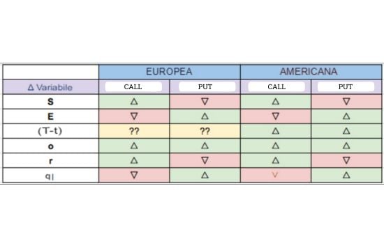 Quindi possiamo dire che le variabili che influenzano il premio di un’opzione sono i componenti che influenzano il costo di un’opzione.