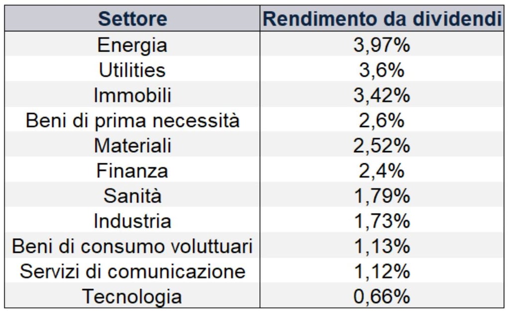Figura 1: Settori azionari globali classificati in base al rendimento dei dividendi