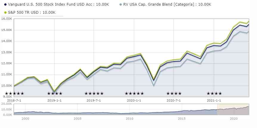Pertanto, i dati di performance (al 10 giugno 2021) per il Vanguard U.S. 500 Index Fund USD Acc sono i seguenti: