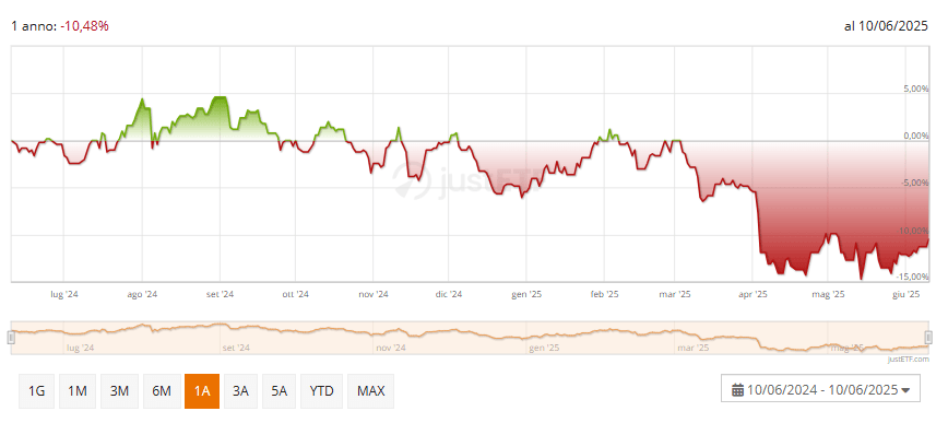 Per l’80% investe in aziende USA, per il 10% in aziende di Cina e Hong Kong. Volatilità a un anno del 22%, ETF ad accumulazione.