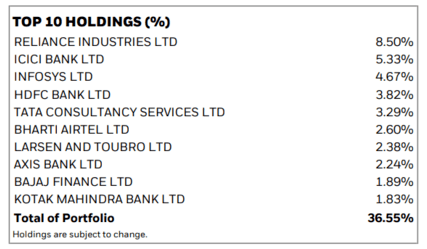 L'ETF mira a replicare l'indice MSCI India, che tiene traccia delle società a grande e media capitalizzazione in India. Il portafoglio comprende un totale di 114 società.