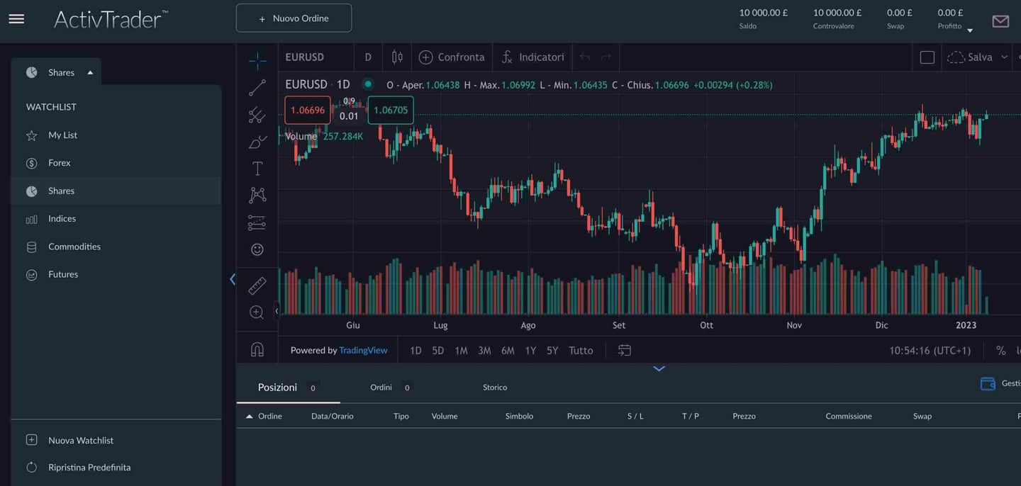 C’è anche la watchlist sulla parte sinistra della piattaforma che permette di monitorare gli strumenti finanziari selezionati.